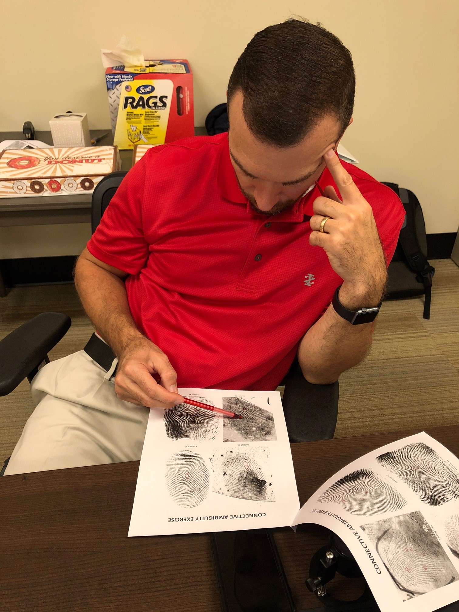 This course was designed to continue to grow the student’s knowledge base as we dove head-long into the science behind the uniqueness and persistence of friction ridge skin. We covered embryology, histology, glands, secretions, and wound healing in an attempt to grow the confidence of the students in the science behind their conclusions. We also spent a significant amount of time on the history of fingerprints, ridgeology theory and technique, searching smart, orientation, target group selection and analysis phase of ACE-V. The students worked through Comparison Exercise B which contained 80 latent prints and an additional comparison exercise that contained 10 latent prints.
